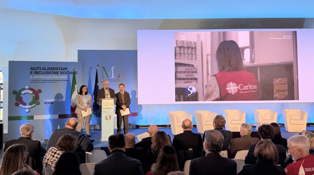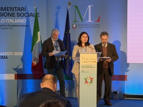 Aiuti alimentari e inclusione sociale: il modello italiano” è il titolo dell’evento che si è svolto a Roma giovedì 5 marzo. Un confronto, tra istituzioni ed enti del Terzo Settore, sulla gestione della filiera italiana degli aiuti alimentari promosso dal Ministero del Lavoro e delle Politiche Sociali e dal Ministero dell’Agricoltura, della Sovranità Alimentare e delle Foreste, in preparazione della prima Presidenza italiana della CoP on Material Support.