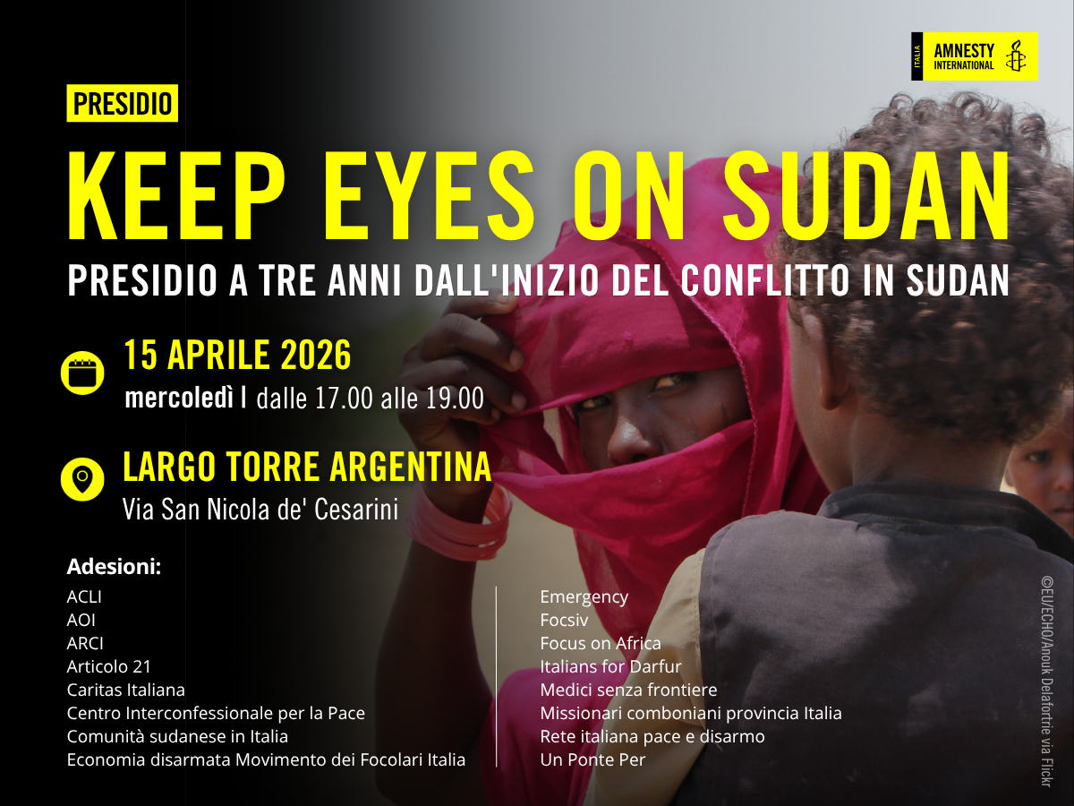 Caritas Italiana ha aderito e invita alla partecipazione al presidio a tre anni dall’inizio del conflitto in Sudan “Keep Eyes on Sudan” promosso da varie realtà e organizzazioni.
