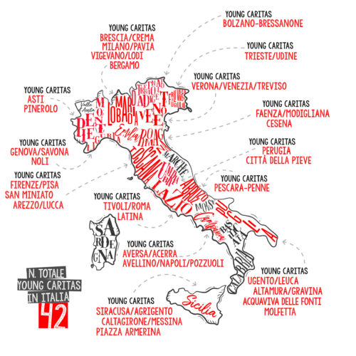 Nell’immagine qui sopra la presenza di YOUngCaritas nelle diocesi italiane.